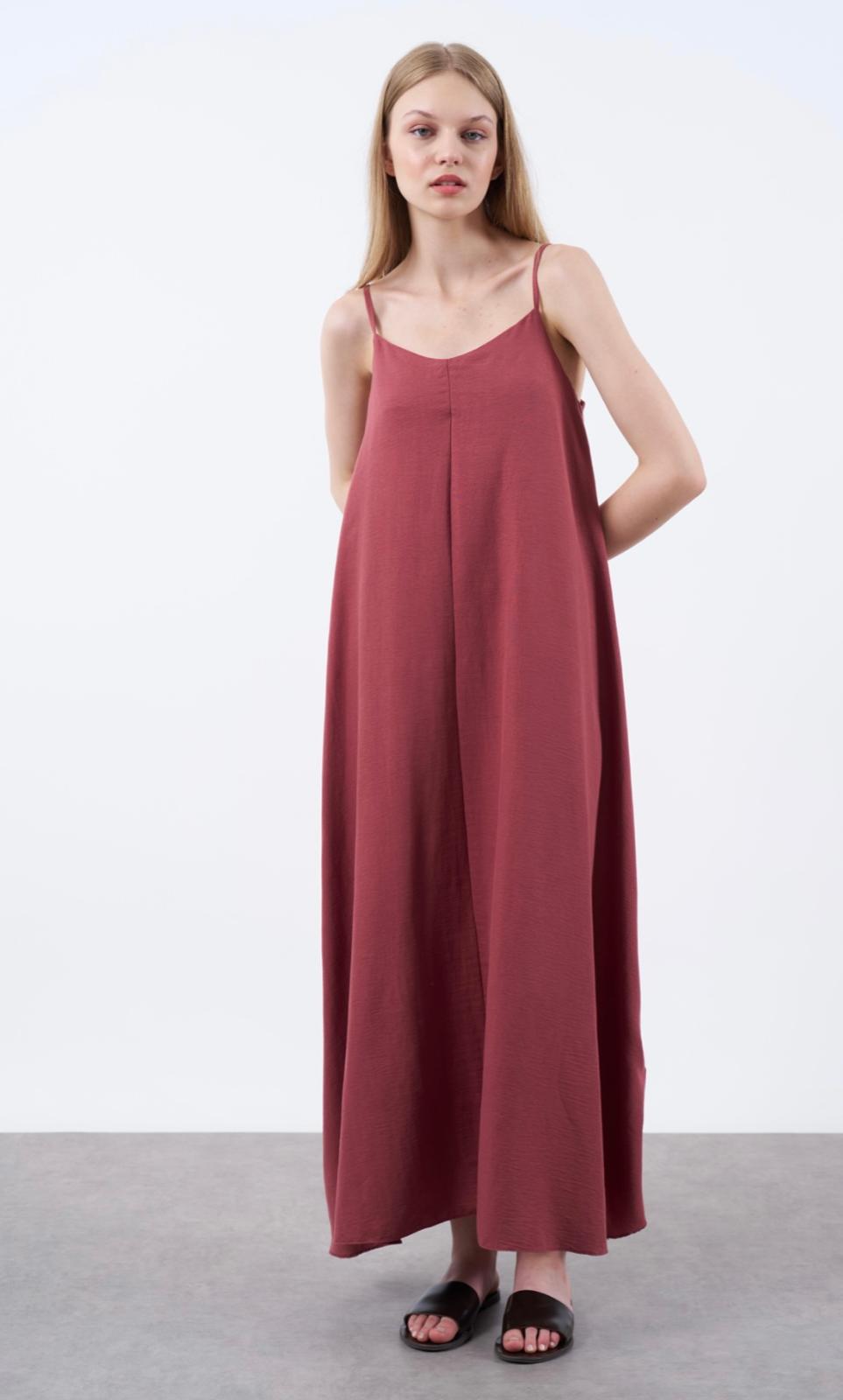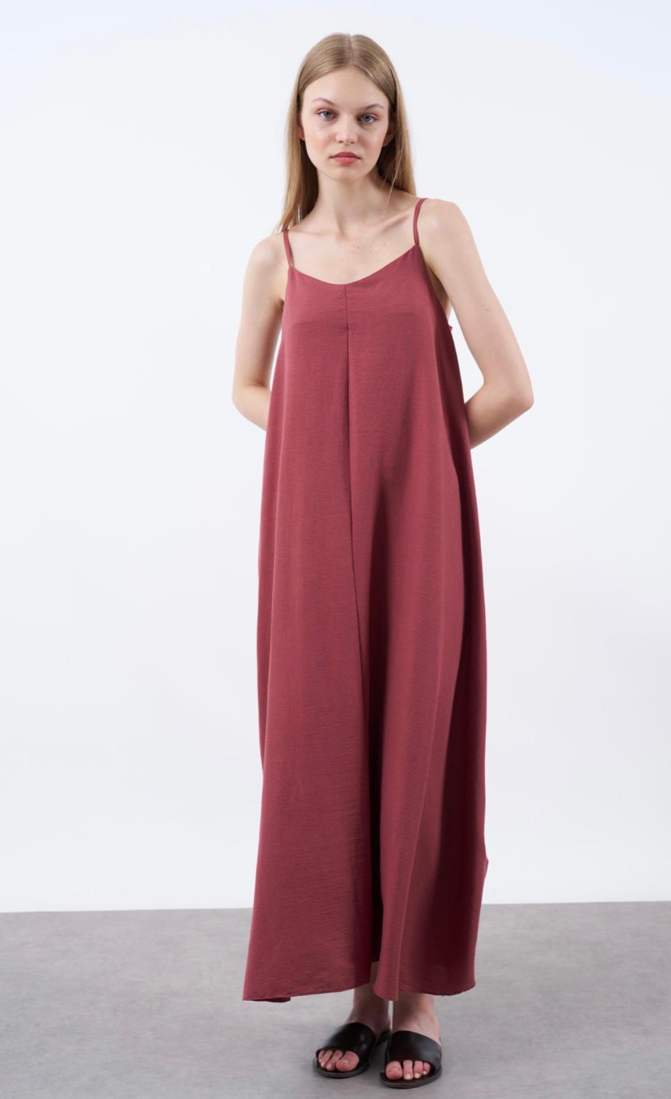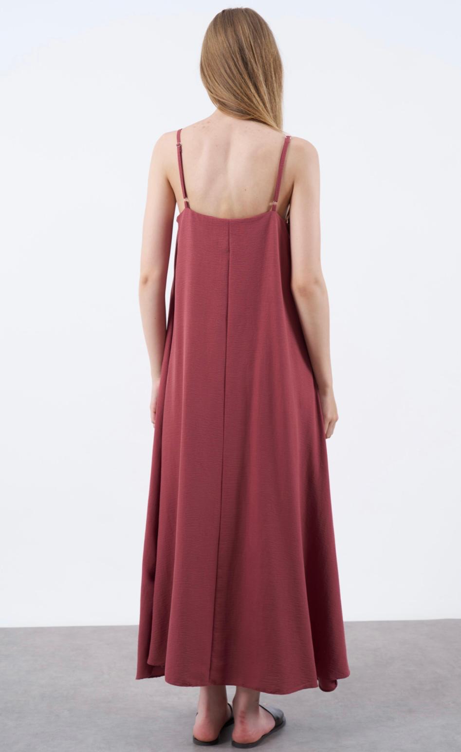 KADIN ASKILI BASİC UZUN ELBİSE BORDO