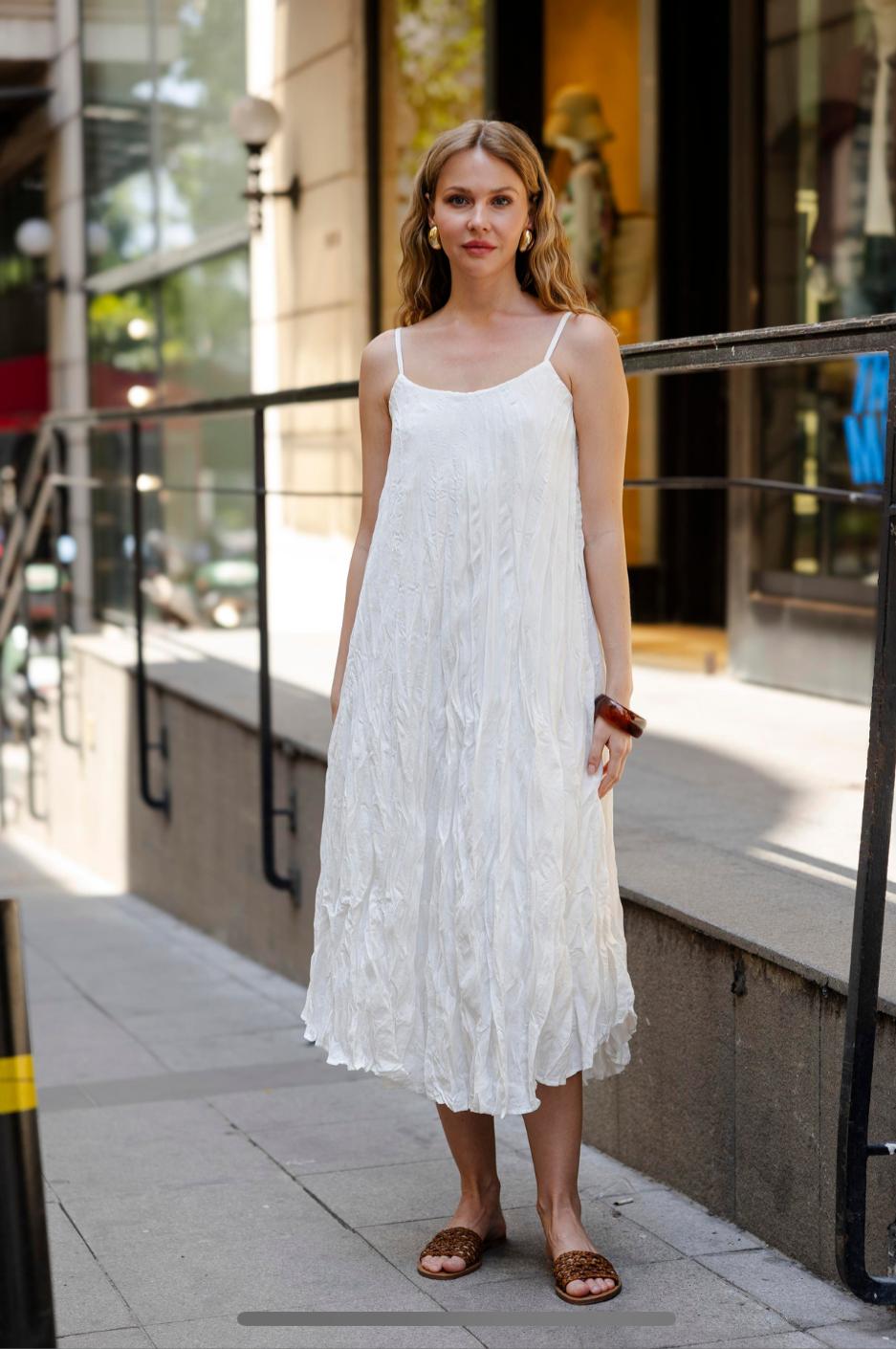 KADIN PREMİUM KIRIŞIK ASKILI ELBİSE BEYAZ
