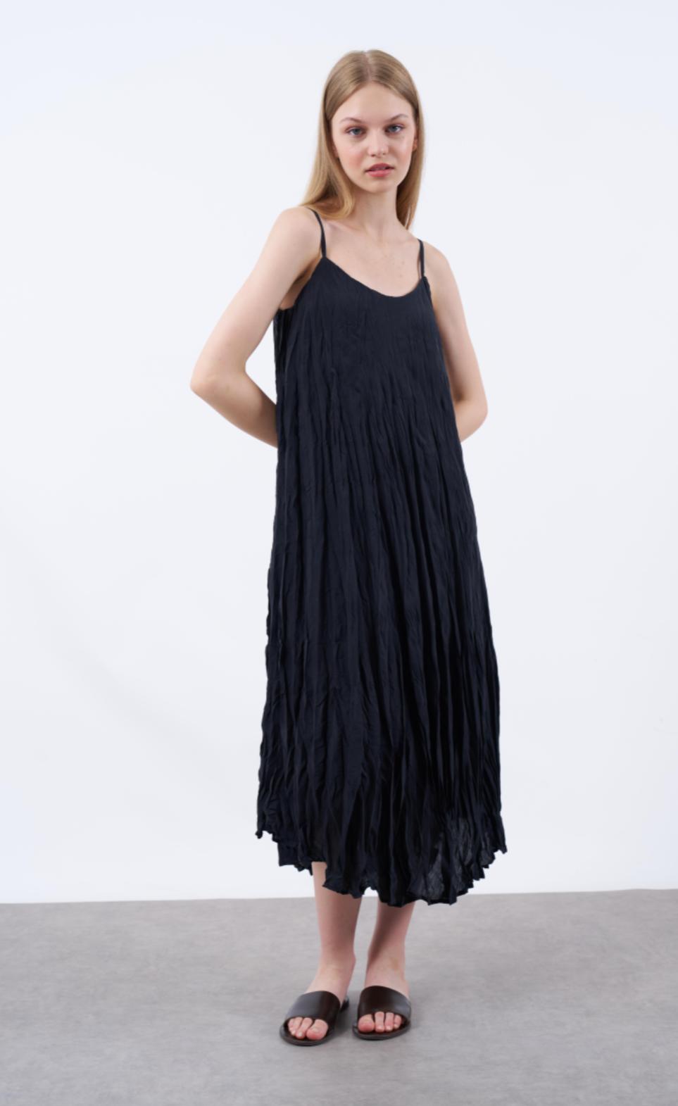 KADIN PREMİUM KIRIŞIK ASKILI ELBİSE SİYAH