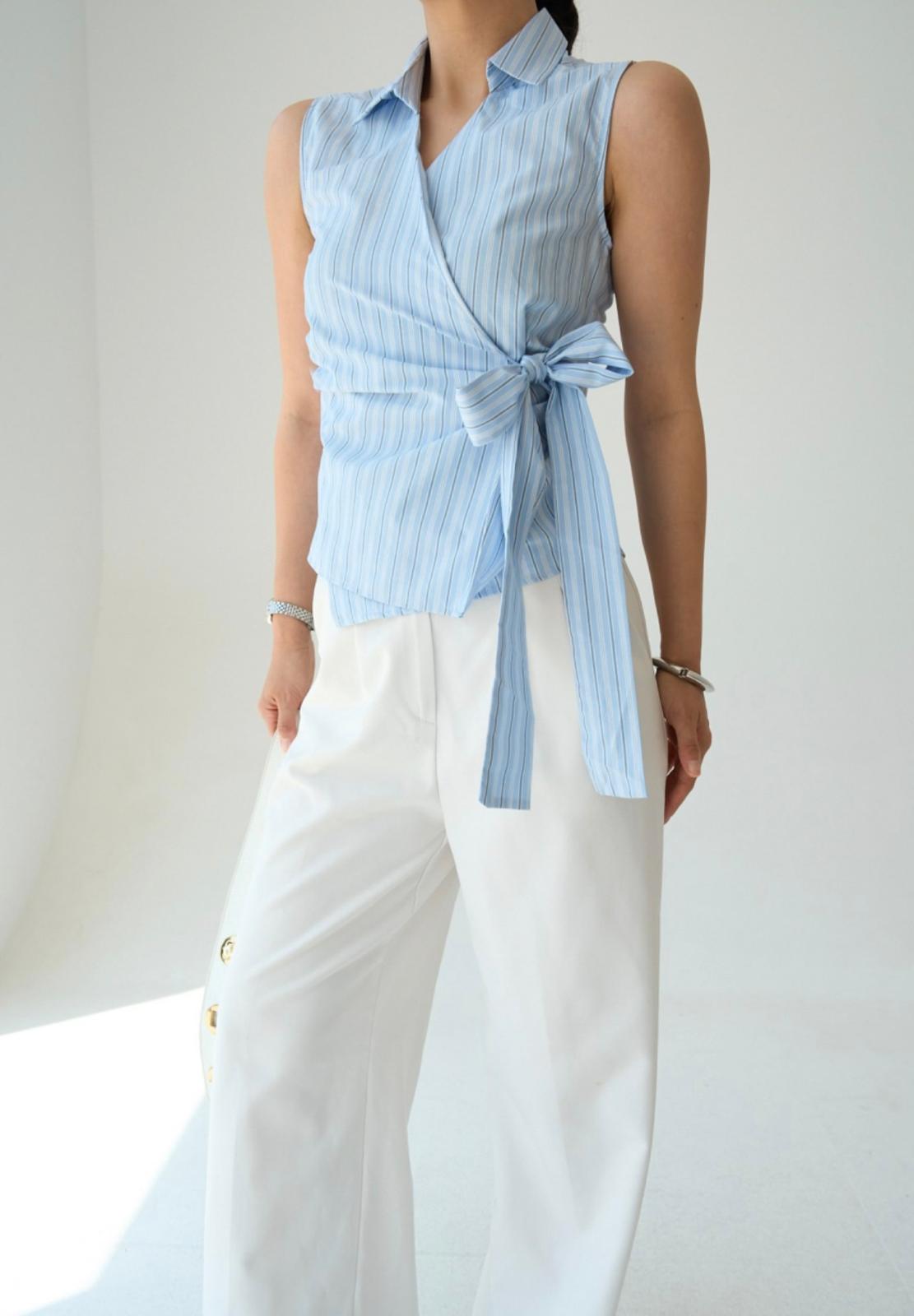 MARİN ÇİZGİLİ FİYONK BAĞLAMALI GÖMLEK MAVİ
